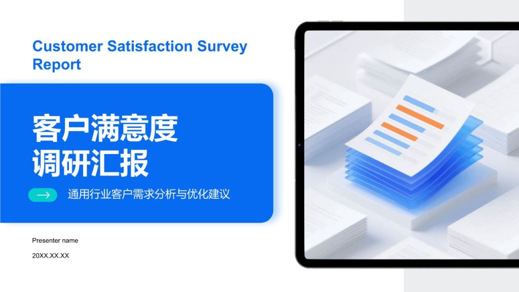 标签:蓝色,现代 / 商务,工作总结,季度总结本报告针对通用行业客户满意度进行调研,旨在总结汇报客户需求,为行业优化服务提供参考。