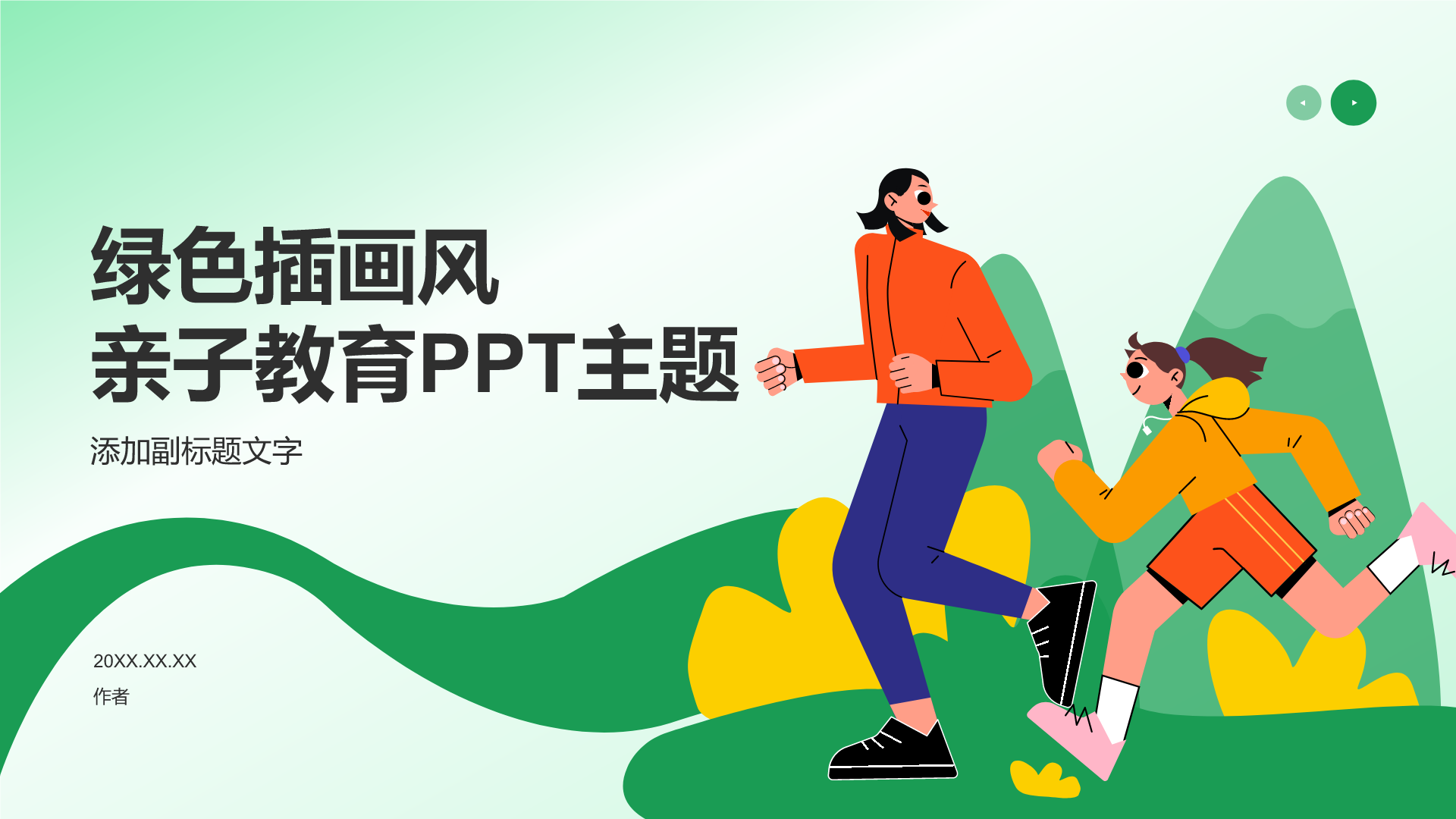 绿色插画风亲子教育PPT主题